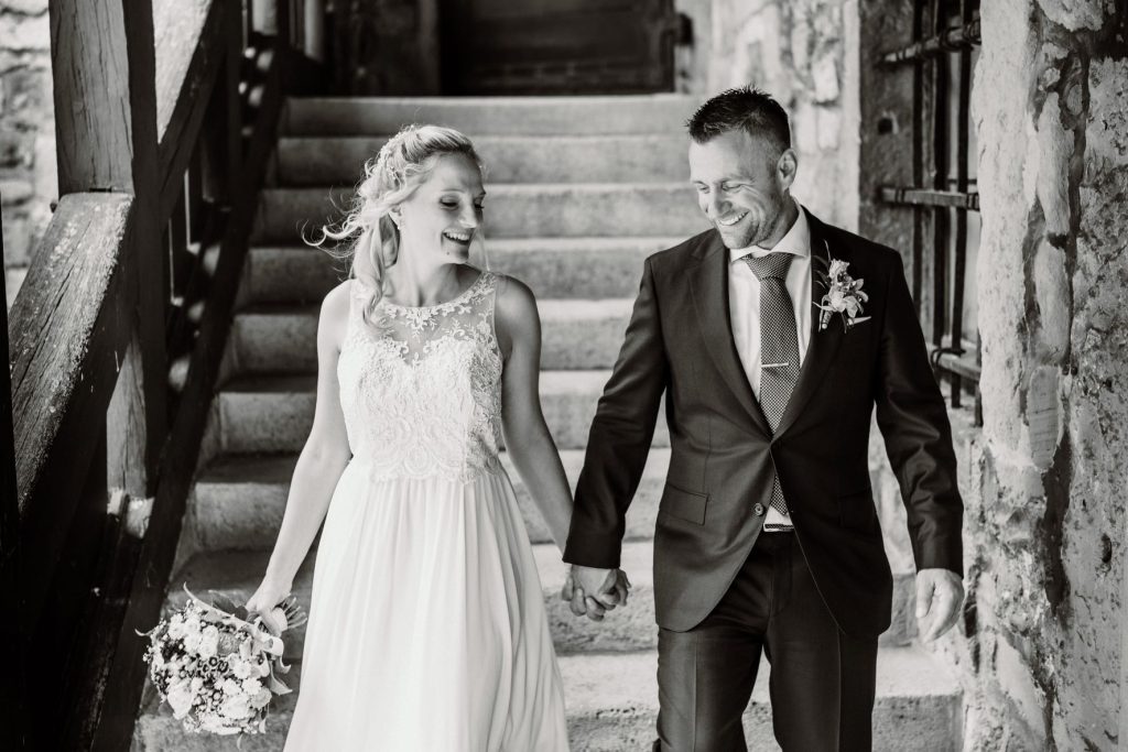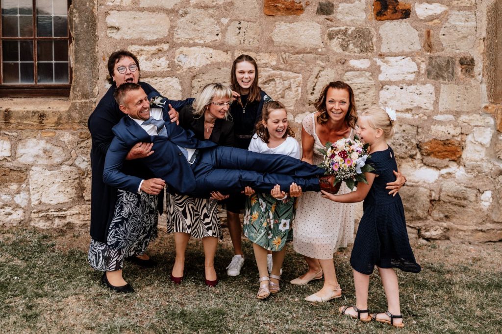 Diese emotionalen und lustigen Bilder sind auf der Hochzeit von Elli und Michael entstanden. Die Trauung hat im kleinen familären Kreis auf dem Standesamt Großrudestedt stattgefunden. Ein richtig schönes kleines Standesamt mit einer sehr netten Standesbeamtin. Die anschließende Feier und das Brautpaarshooting ist auf der Wachsenburg (Drei Gleichen Thüringen) erfolgt. Eine schönere Lokation kann man sich fast garnicht wünschen. Liebevoll wurde der Rittersaal für die Feier hergerichtet. Elli und Michael waren so gut drauf, das dadurch richtig lustige natürliche Bilder entstanden sind. Es war eine lockere und sympatische Atmosphäre, das ich ewig hätte weiter fotografieren können.